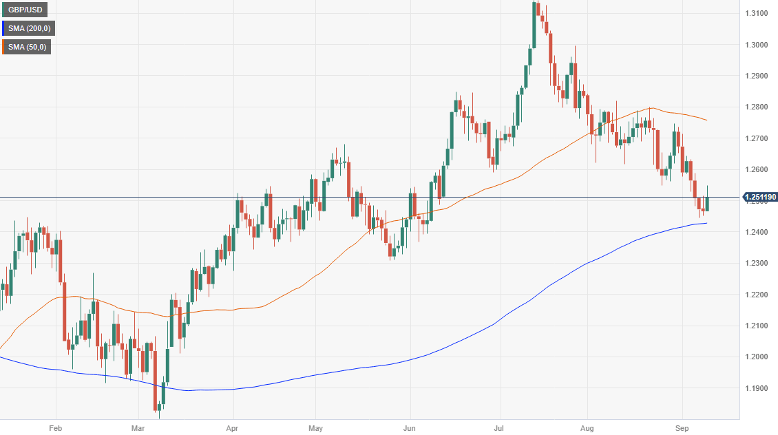 The Pound Sterling (GBP) posts modest gains versus the US Dollar (USD) late on Monday’s North American session after seesawing in an 80-pip range, though it stays afloat above the 1.2500 figure. The GBP/USD is trading at 1.2510, gains 0.37%.