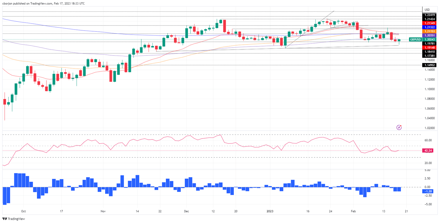 Data from both sides of the Atlantic kept the GBP/USD pressured, which finally dropped below the 200-day EMA. A UK inflation report on Tuesday contributed to speculations that the Bank of England (BoE) would not hike rates as aggressively as expected. That, alongside softer than expected Consumer Price Index (CPI) for January in the US, which exceeded estimates by bank analysts, incremented the likelihood of further tightening by the US Federal Reserve (Fed).