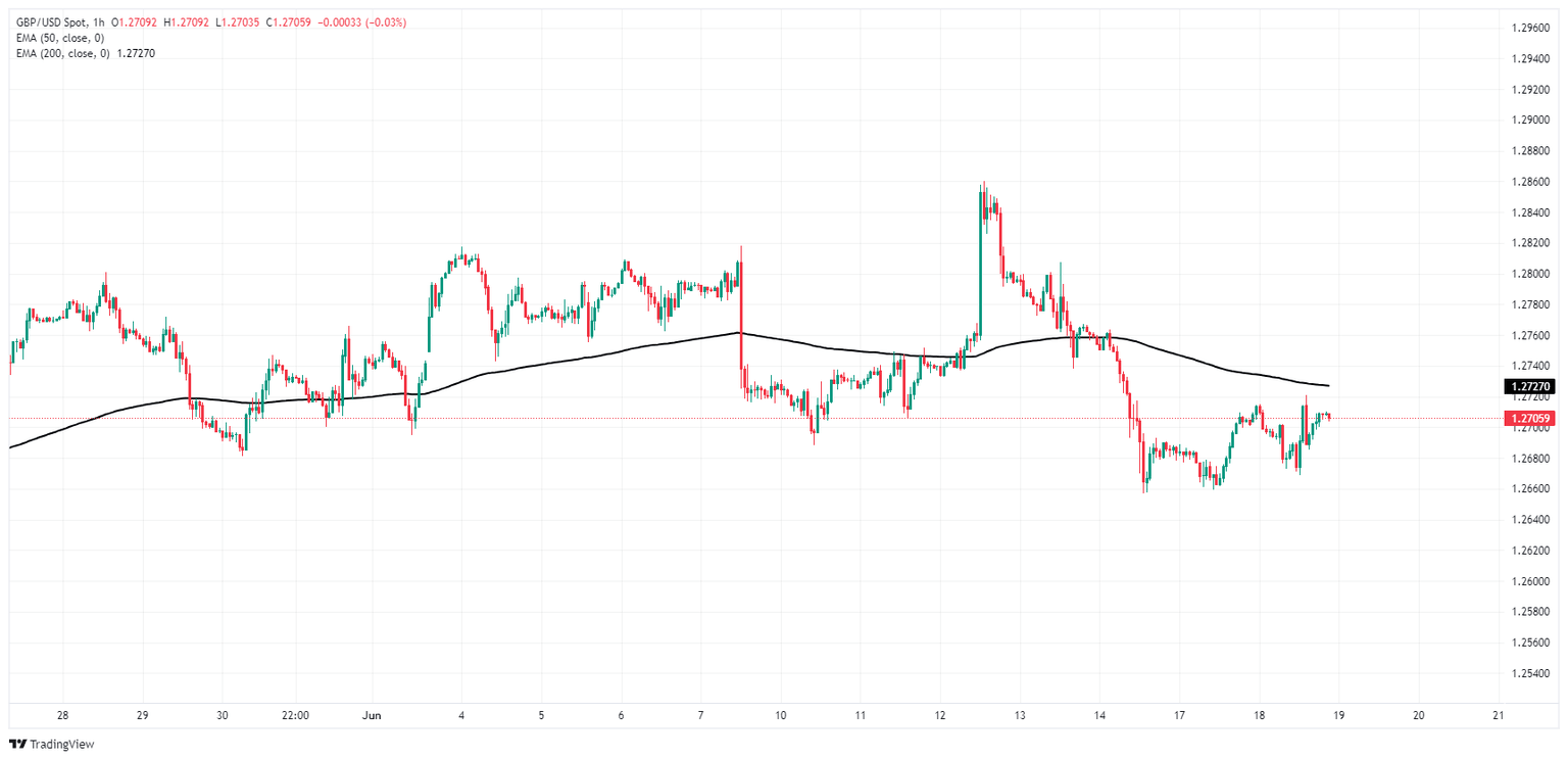 Rough consolidation has marred near-term technicals on GBP/USD, and the pair is trapped just beneath the 200-hour Exponential Moving Average (EMA) at 1.2727. Momentum has stalled out after the Cable etched in a near-term high near 1.2860 last week.