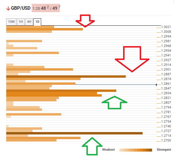 The Technical Confluences Indicator is showing that GBP/USD faces resistance at 1.2880, which is the convergence of the Fibonacci 61.8% one-week, the Simple Moving Average 200-1h, the SMA 50-4h, the Bollinger Band 4h-Upper and more.