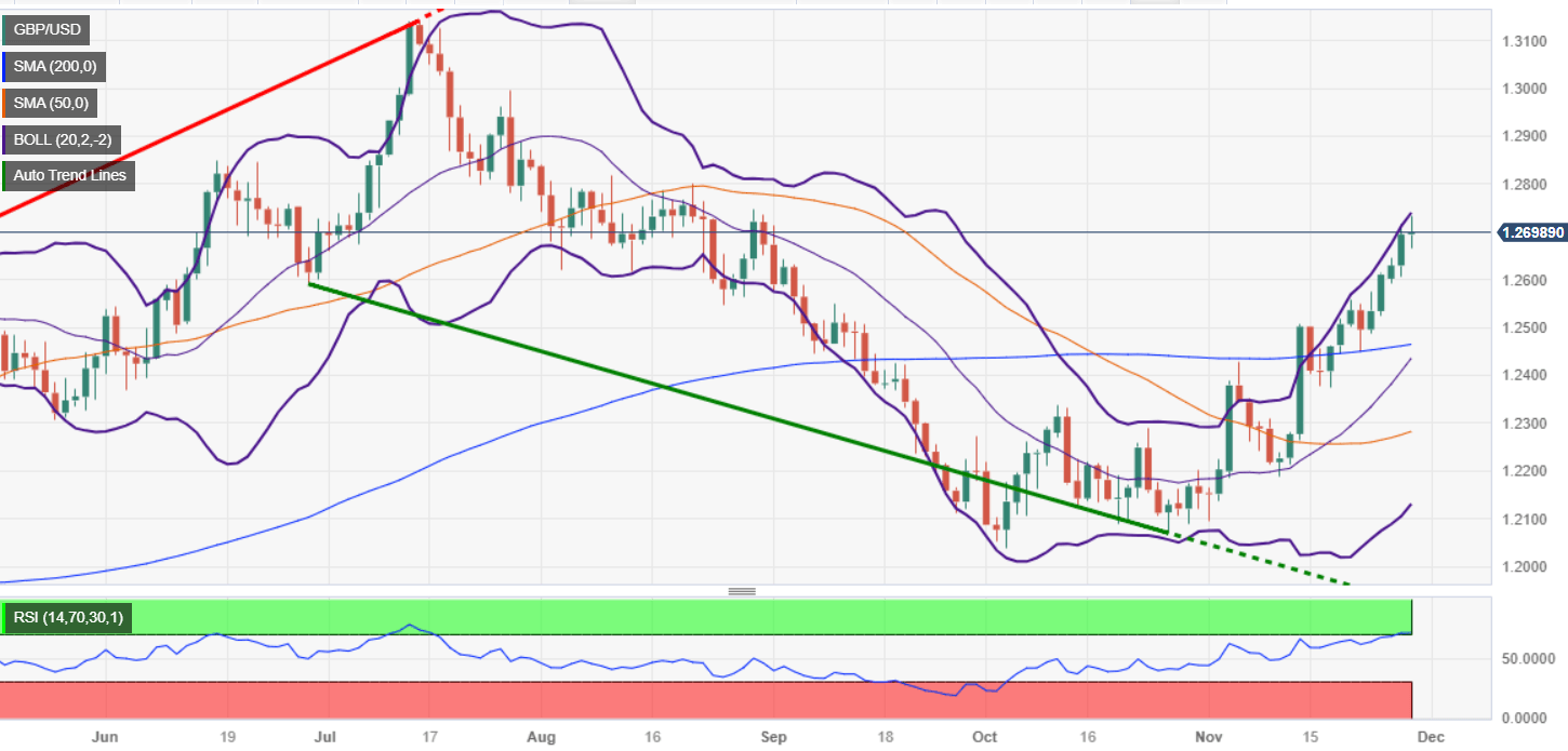 Given the backdrop, the GBP/USD must likely remain bullish after yesterday’s remarks of Fed Governor Christopher Waller, who opened the door for rate cuts. Since then, money market interest rate futures foresee 115 bps of rate cuts by the Fed next year, higher than yesterday morning’s 85 bps. That said, if the major stays above 1.2700, a challenge of 1.2800 is on the cards.