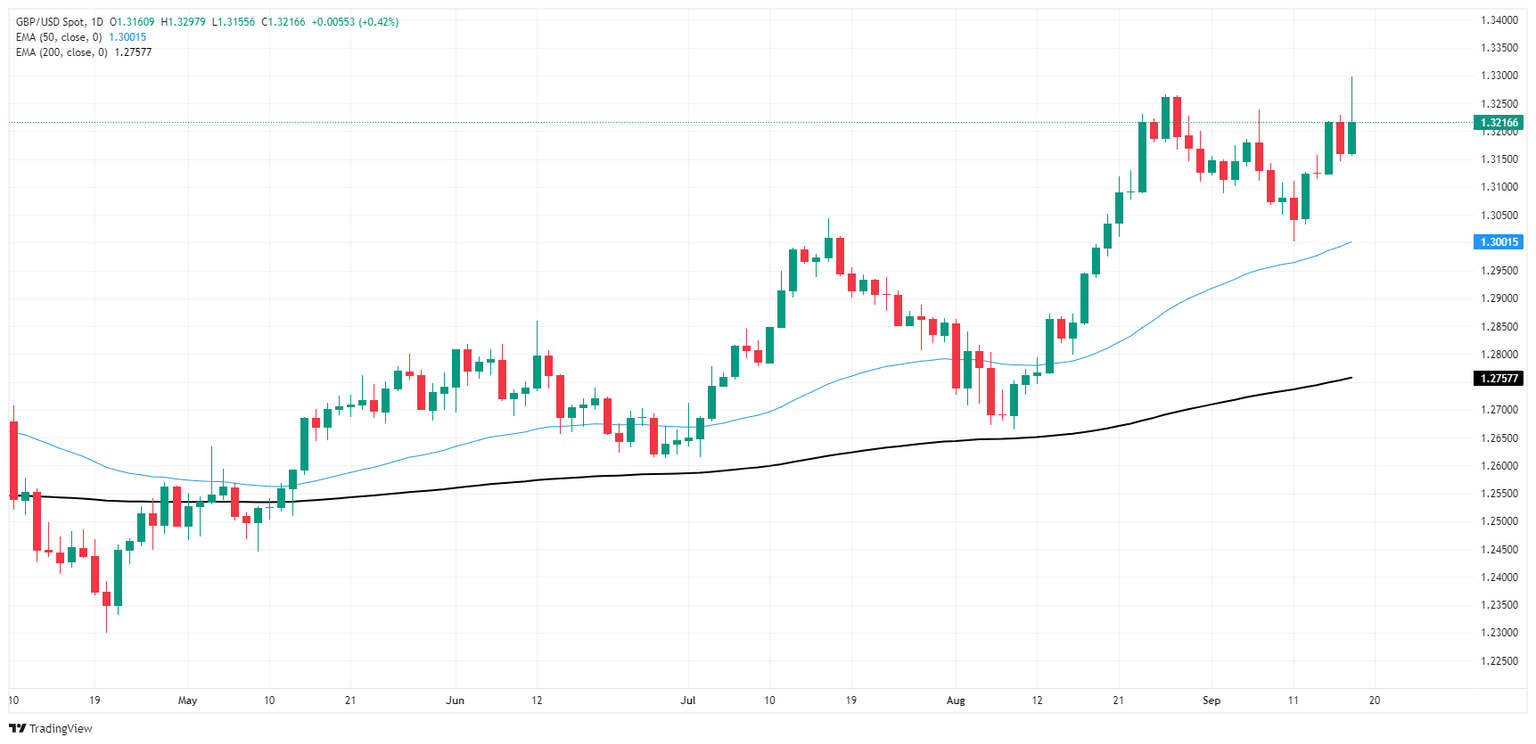 GBP/USD hit a fresh 30-month high on Wednesday, pushed within inches of the 1.3300 handle after the US Federal Reserve (Fed) trimmed interest rates by a jumbo 50 bps and chalking in the US central bank’s first rate cut in over four years. The UK’s Bank of England (BoE) is set to deliver its own September rate call early Thursday, but no moves are expected from the BoE after already cutting reference rates earlier this summer.