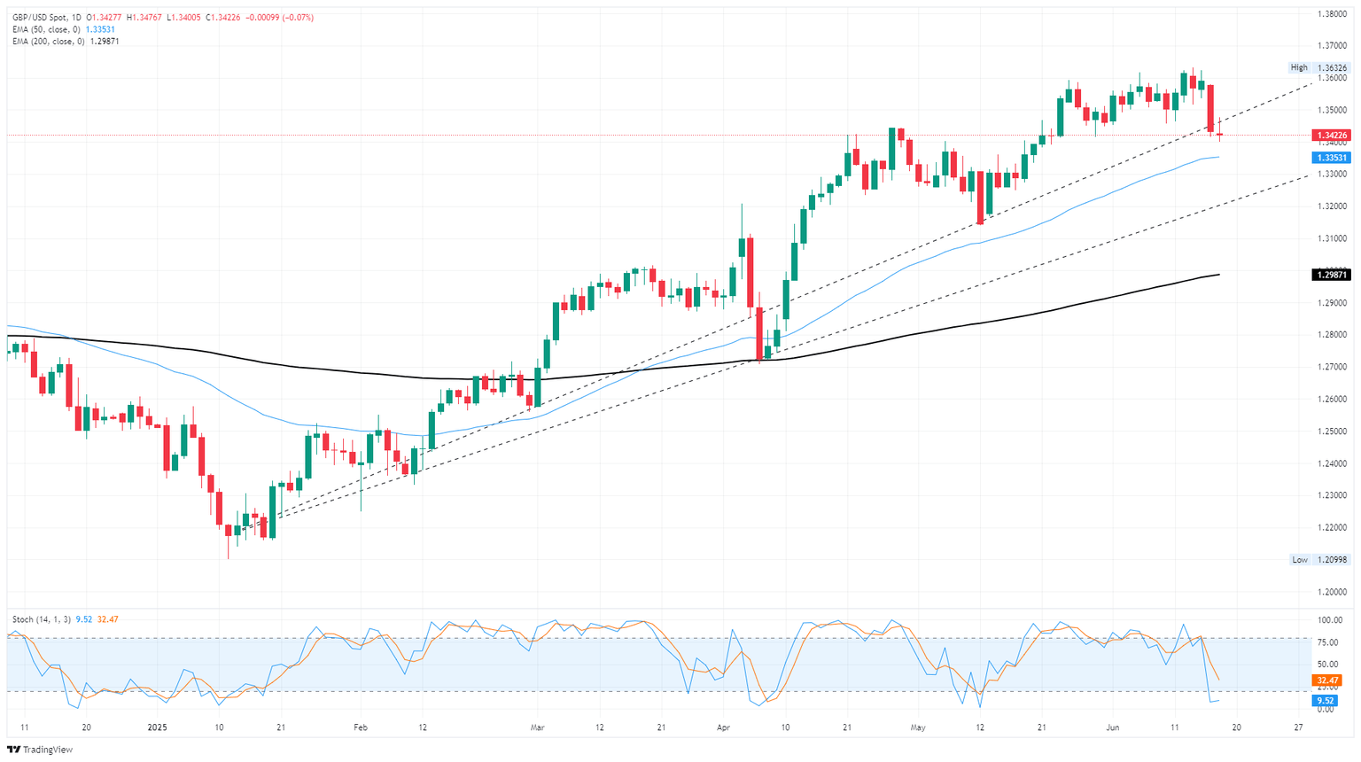 Cable’s early-week decline puts GBP/USD on pace to take a fresh bear run at the 50-day Exponential Moving Average (EMA) near 1.3350, but only if bearish momentum continues. GBP/USD has tended to fade bearish snaps through 2025, with the pair still finding technical support from a rising trendline drawn from January’s lows near 1.2100.