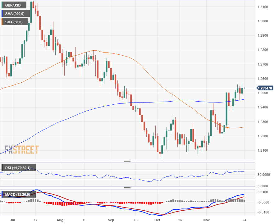 With the GBP/USD briefly testing its highest bids since early September, the pair has set a new near-term technical ceiling at 1.2575, although daily candlesticks show the pair has been struggling to develop meaningful momentum above the 200-day Simple Moving Average (SMA).
