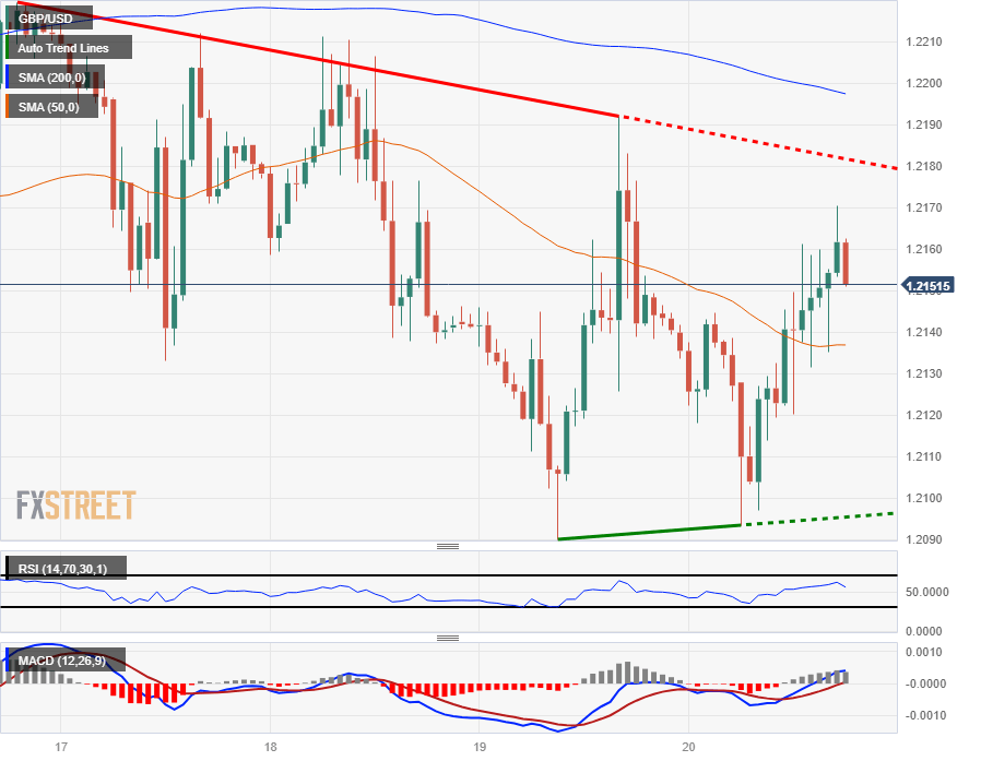 The Pound Sterling is trading into 1.2150 against the US Dollar after pinning a late high of 1.2170 on Friday, with the GBP/USD seeing a Dollar-bearish fueled recovery from the day's lows near 1.2093.