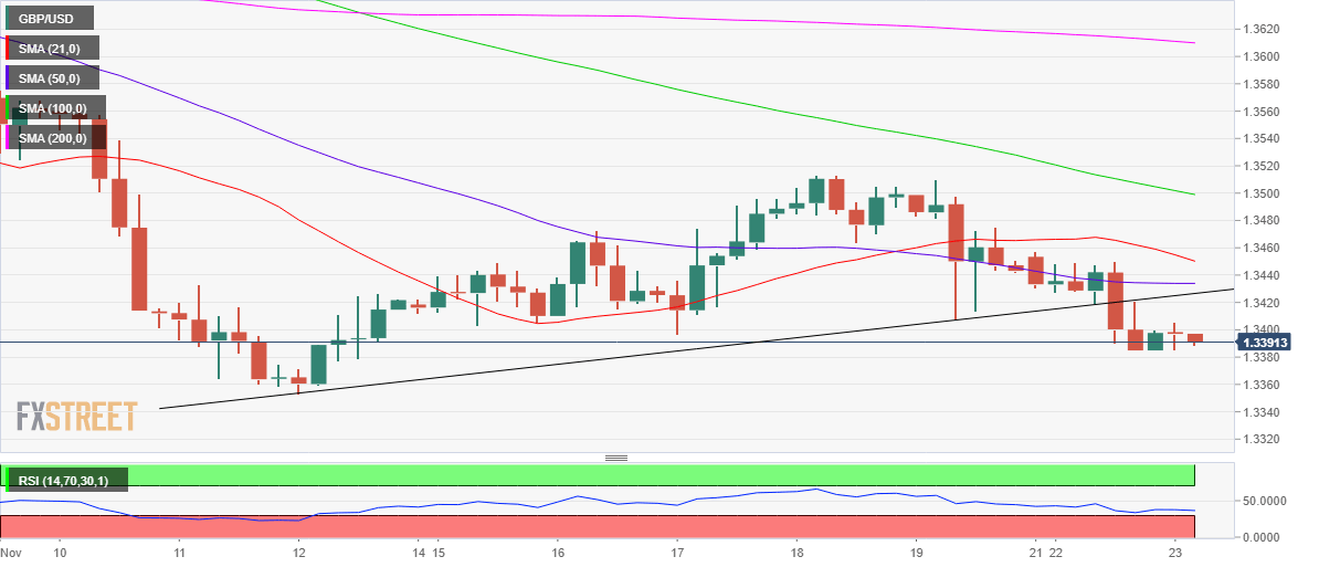GBP/USD is trading modestly flat below 1.3400, having failed to find acceptance above the psychological level, as markets remain cautious amid Fed’s tapering bets, looming covid fears and Brexit concerns.