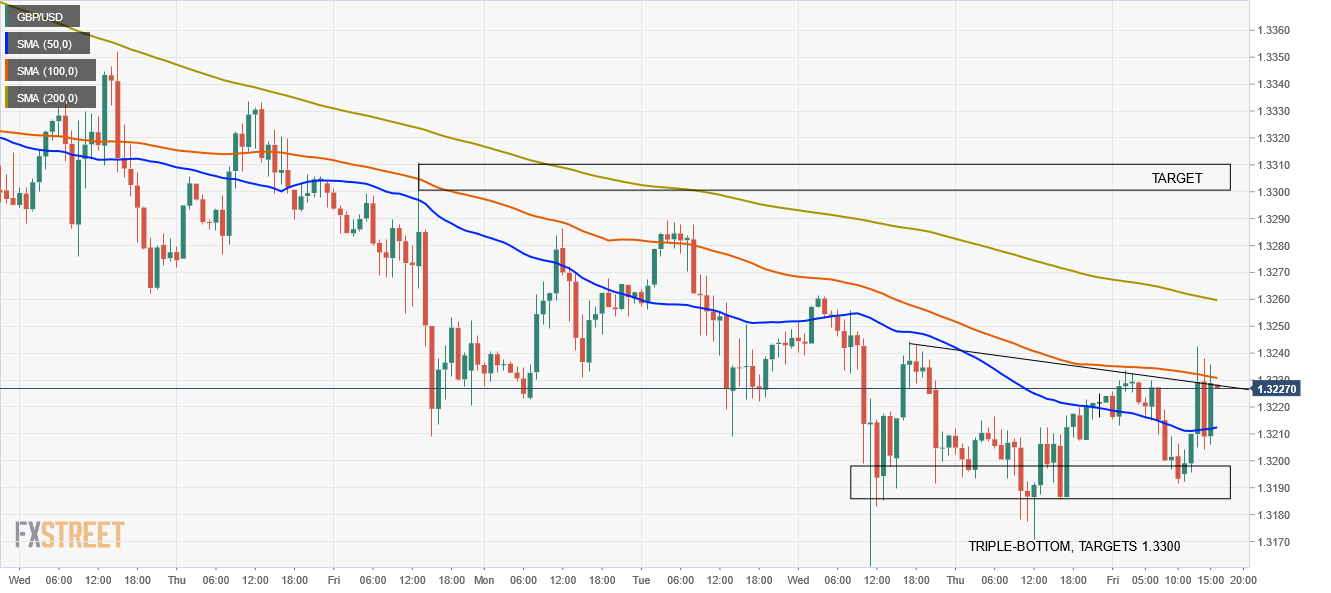 - GBP/USD Price Forecast: A triple-bottom in the 1-hour chart targets 1.3300.