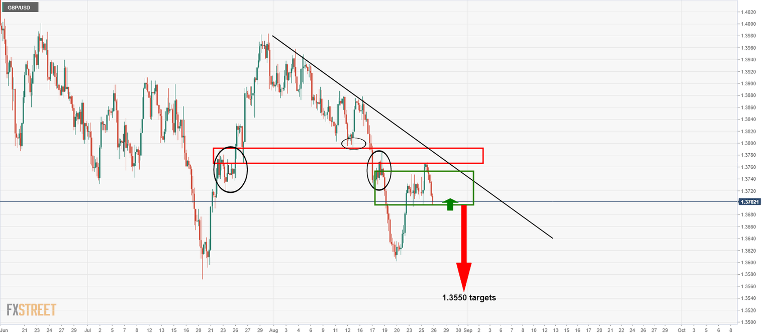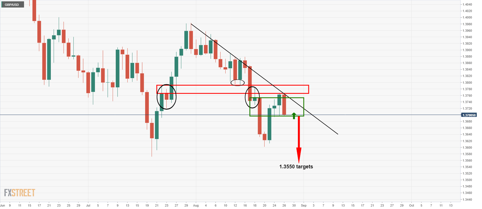 GBP/USD piercing below 1.3700 as Fed hawks circle over Jackson Hole