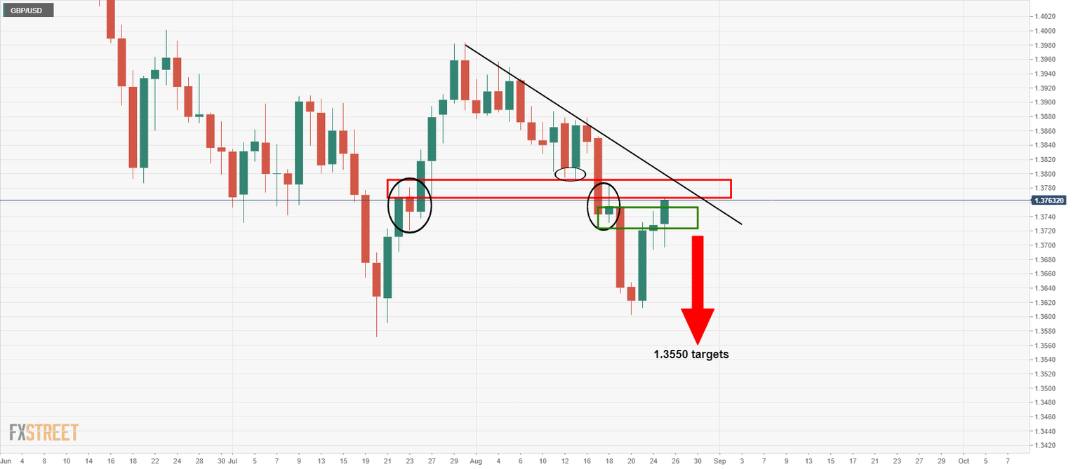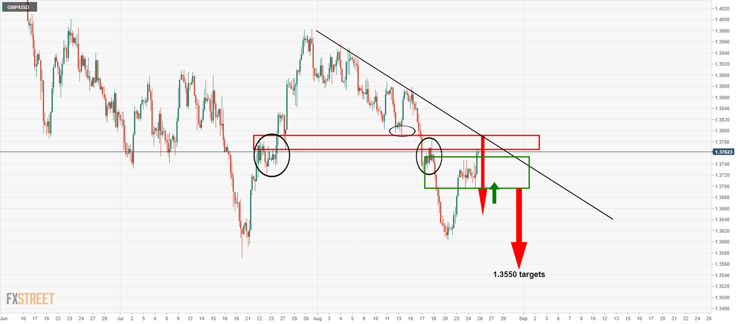 As pe the prior analysis, GBP/USD Price Analysis: Bears waiting to pounce to target the 1.3550s, the market is starting to line up.