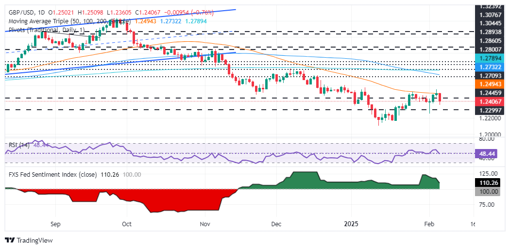 The Pound Sterling (GBP) fell during Thursday’s North American session, down 0.79% after the Bank of England (BoE) reduced the Bank Rate by 25 basis points. Therefore, the GBP/USD pair tumbled below 1.2400 and hit a daily low of 1.2359. At the time of writing, the pair trades at 1.2405.