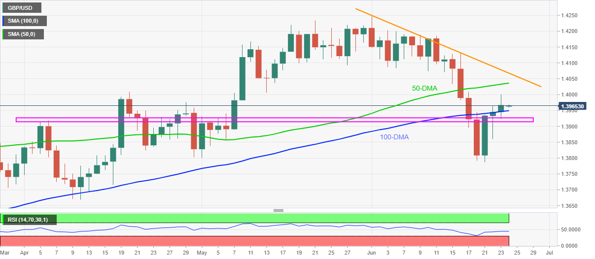 GBP/USD picks up bids to 1.3965 during the fourth consecutive positive day in Asia. In doing so, the cable pair cheers the previous day’s upside break of 100-day SMA (DMA) amid upbeat RSI conditions. However, bulls are chained ahead of the key monetary policy meeting of the Bank of England (BOE).