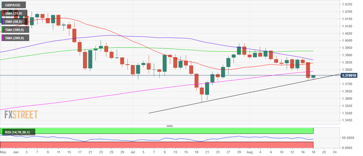 In doing so, the pair has stalled its two-day decline, although the risks remain skewed to the downside following a daily closing below the 200- Daily Moving Average (DMA) at 1.3768.