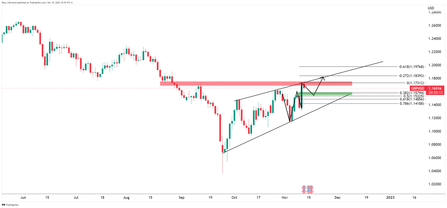 The markets reacted in such a manner that this might allow the Federal Reserve to ease up on aggressively hiking interest rates and this gives rise to the prospects of a prolonged offer in the US Dollar, bullish for GBP. However, there are prospects of a correction and the Dollar bulls may not be out of the game entirely: