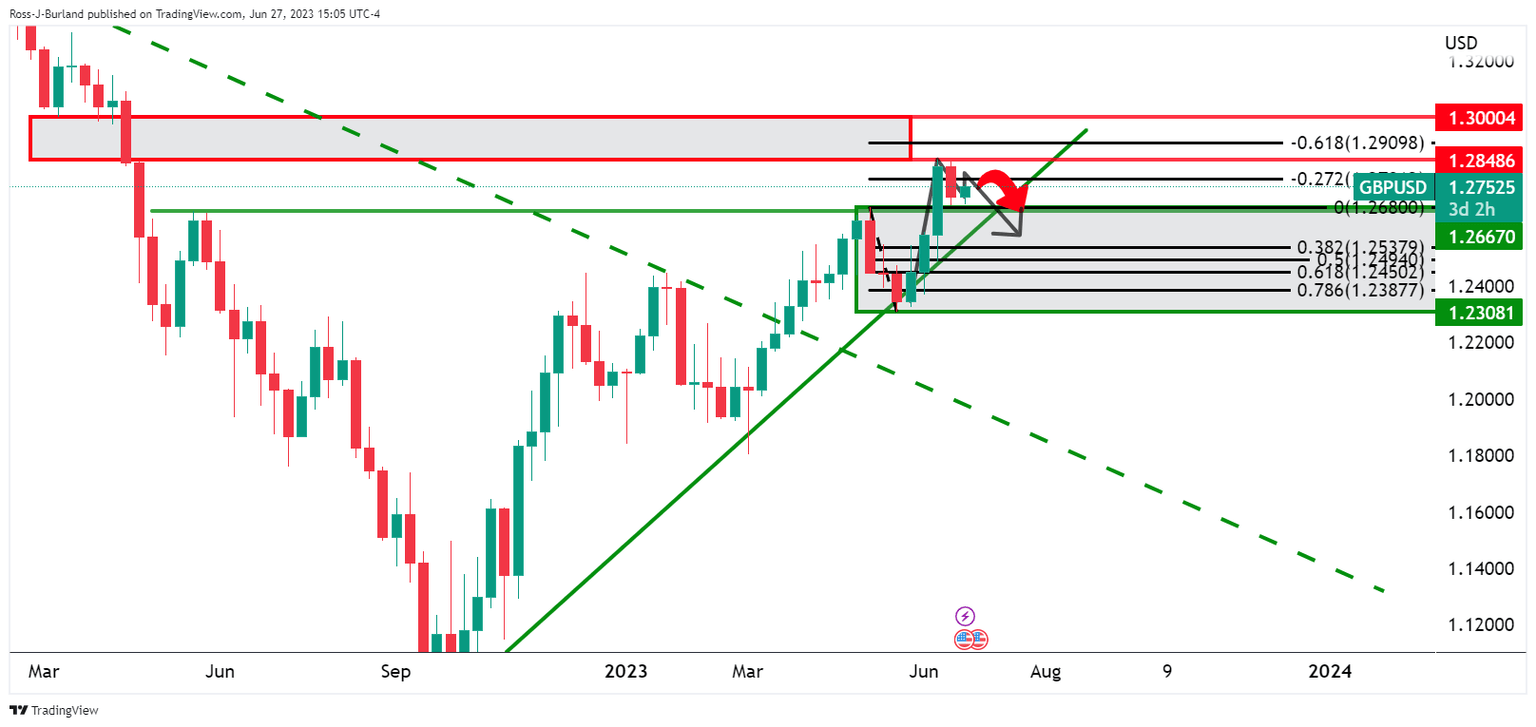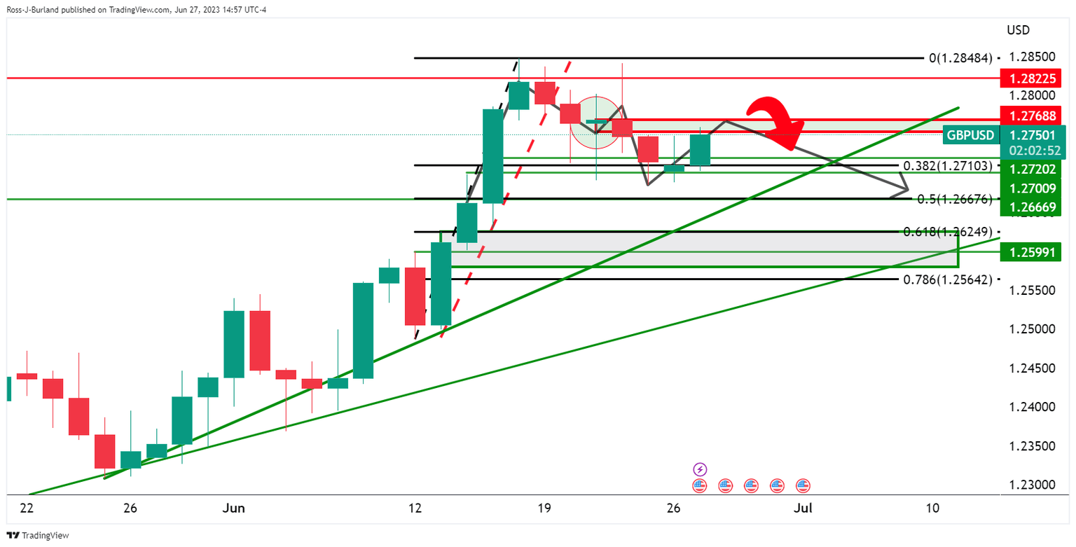 Meanwhile, the daily chart shows the price structure as an M-formation. The neckline is regarded as a resistance area around 1.2770/1.2800. Wednesday could be stacking up to be a sell-off to below the lows of the week's initial balance which leaves trendline support vulnerable looking ahead.