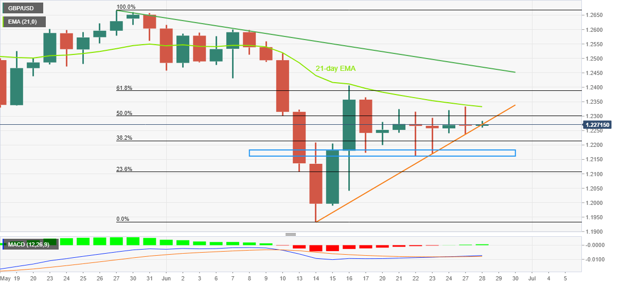 GBP/USD struggles for clear directions as it seesaws around two-week-long support surrounding 1.2260 heading into Tuesday’s London open.