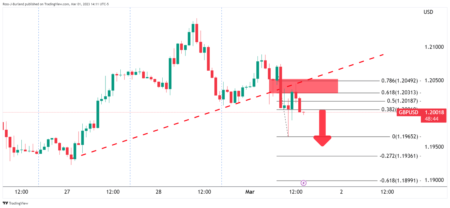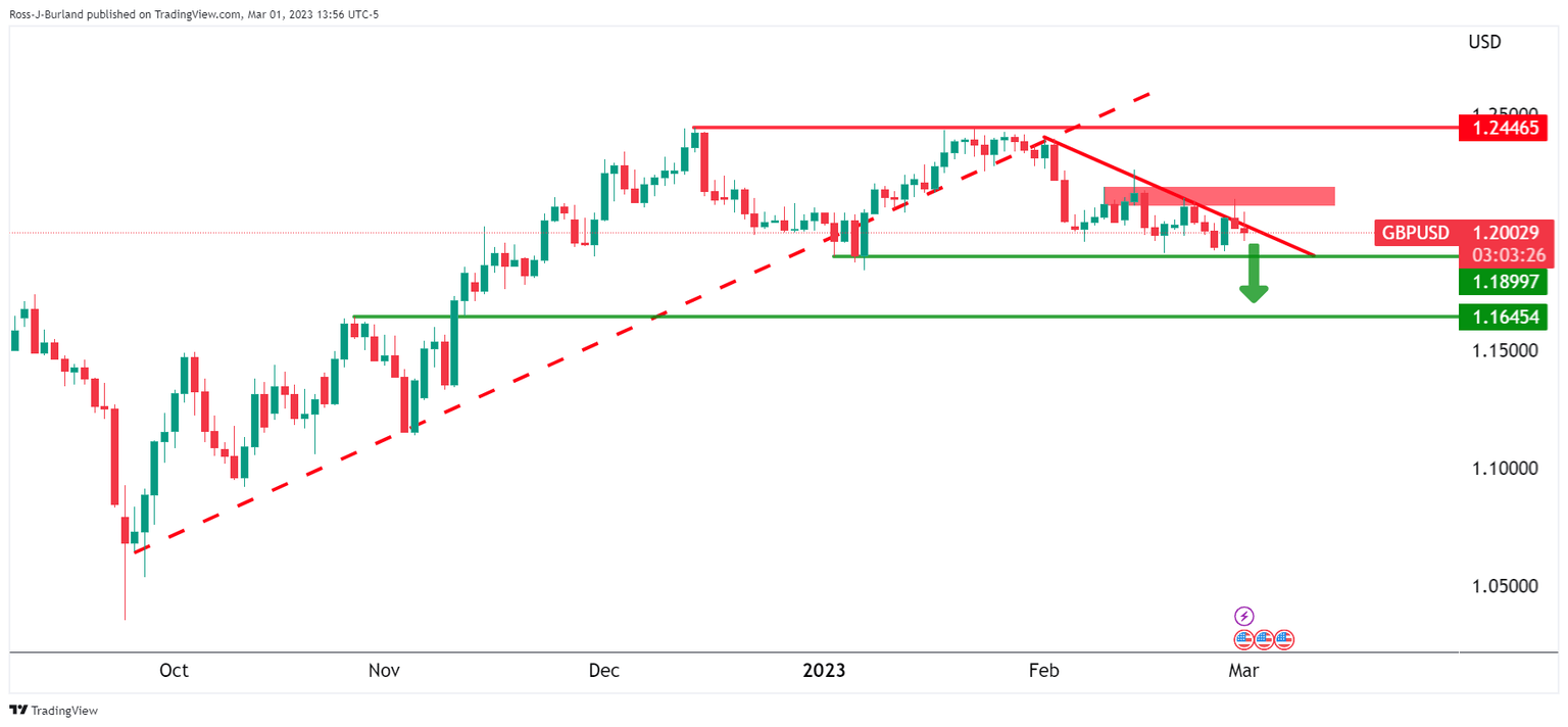 - GBP/USD bears are in town and eye a move towards last week's lows.