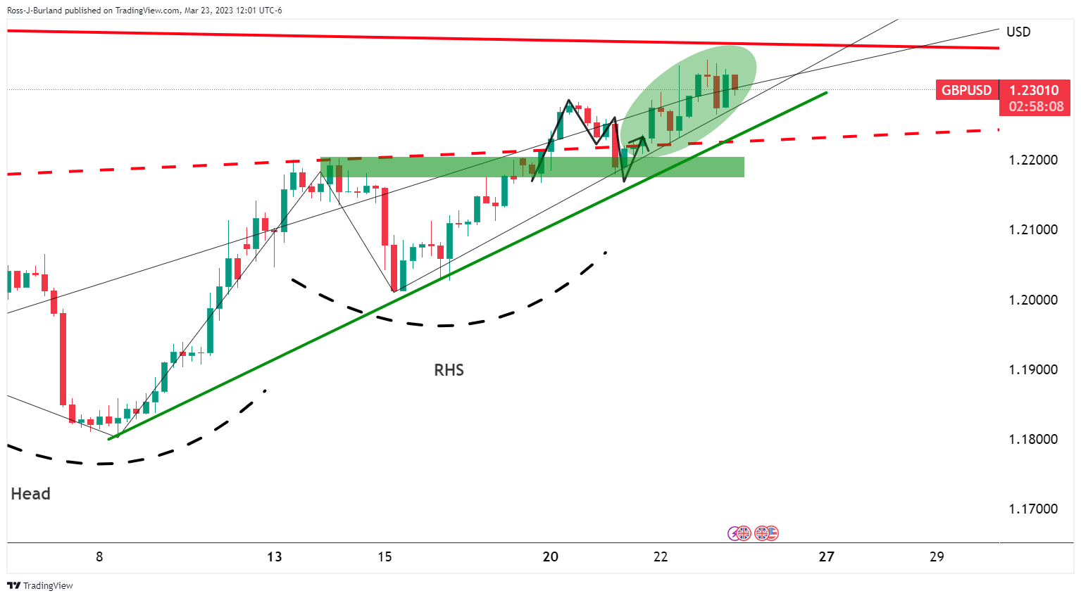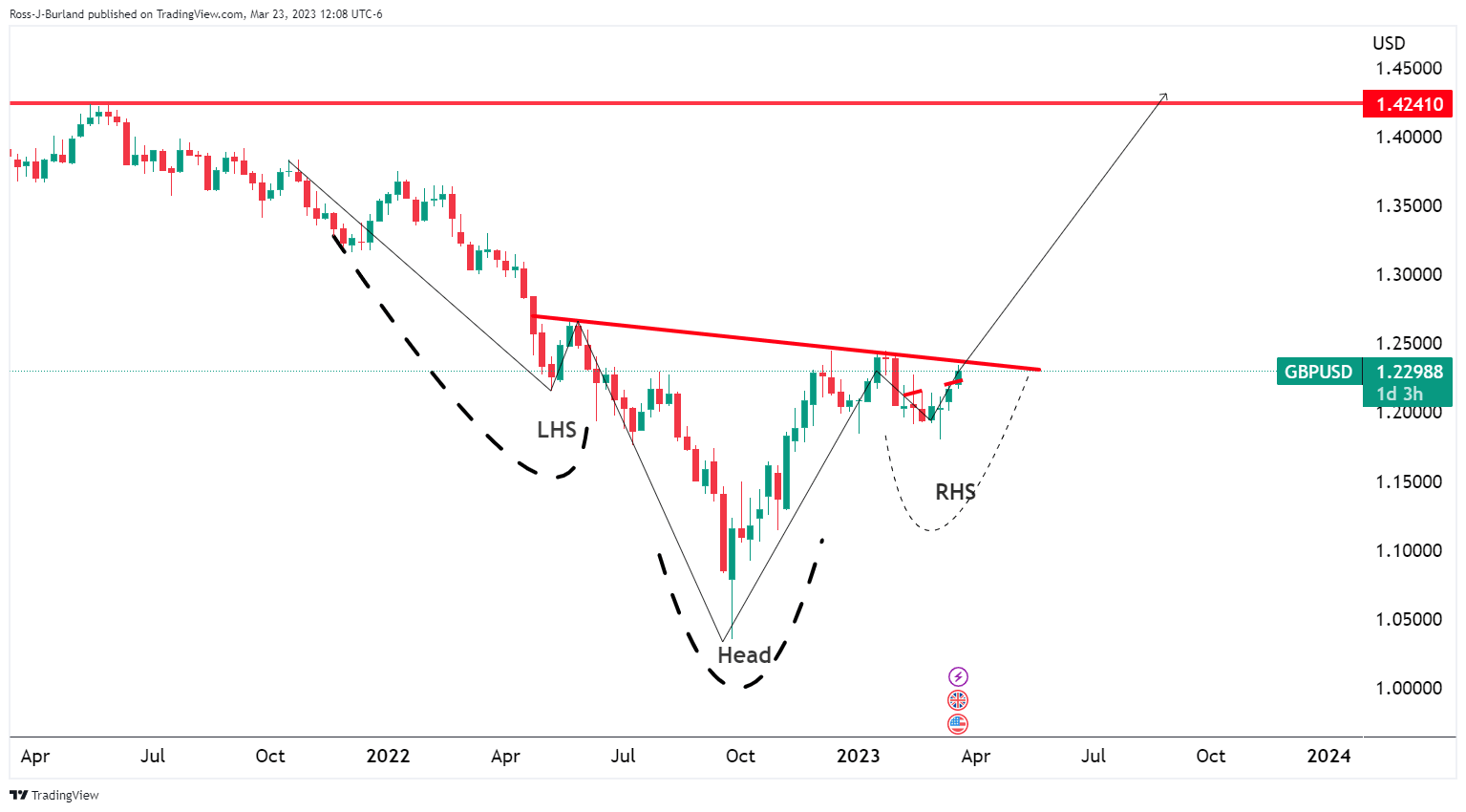 GBP/USD is moving in on the longer-term chart´s head shoulders neckline: