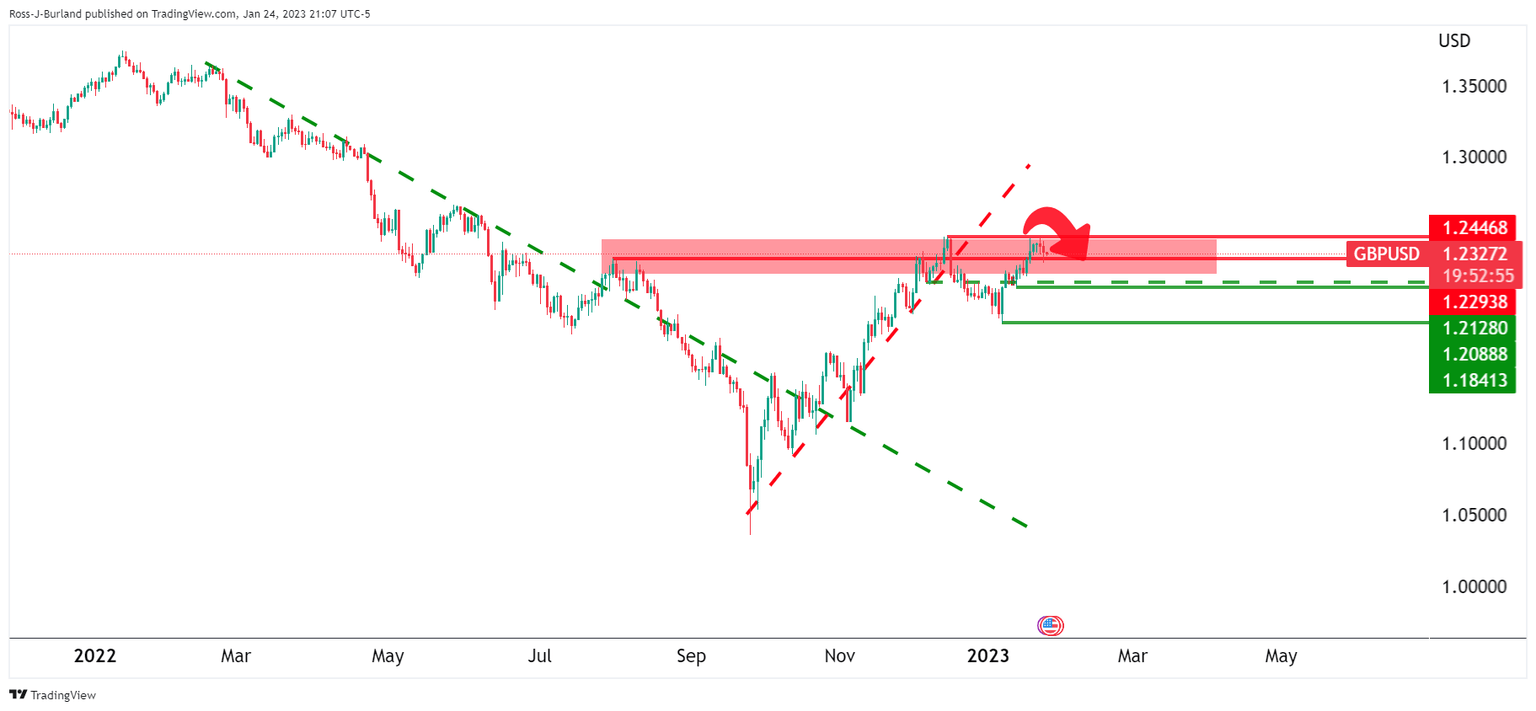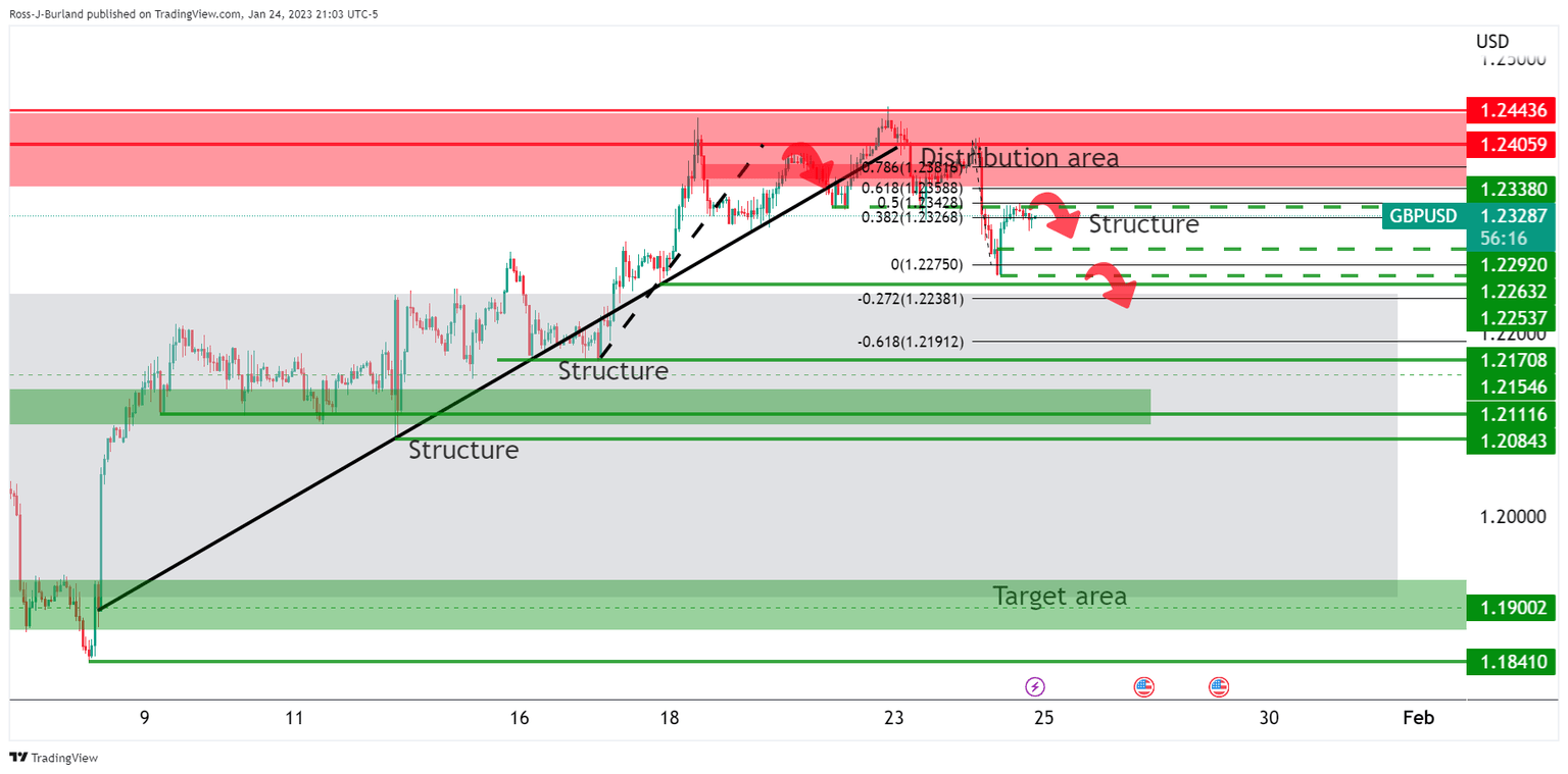 GBP/USD Price Analysis: Bears moving in at a 61.8% Fibo below key resistance