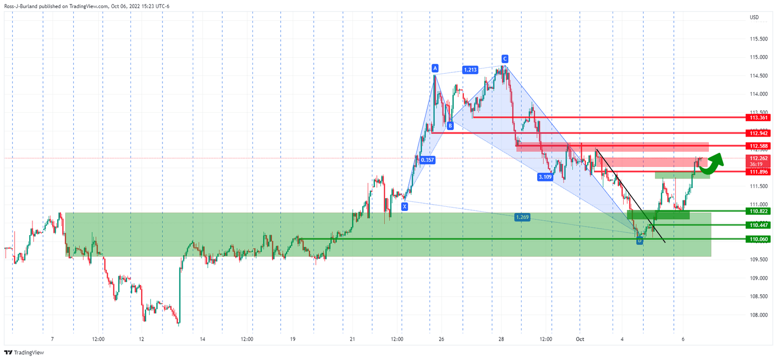 On Thursday, the greenback is back above 112.00, recovering from when it was initially falling against most majors at the start of the week before regaining ground. The question here is whether it can extend the gains towards the high of the week through 112.50. If Friday's NFP is terrible, then the 111 level will potentially come under pressure, whereas if the data is in line, it will be another disappointment for those looking for a Fed pivot and positive for the greenback, bearish for GBP: