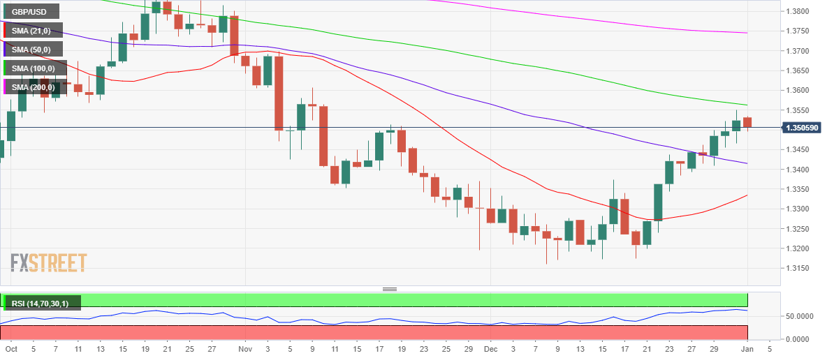 GBP/USD is keeping its range around 1.3500, undermined by the US dollar’s sharp comeback amid discouraging news starting out the first trading of 2022.
