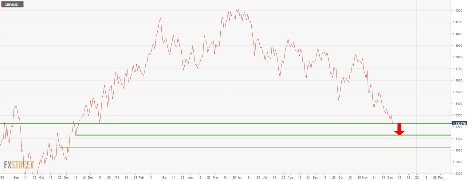 GBP/USD Price Analysis: bears stepping with eyes on 1.32 the figure