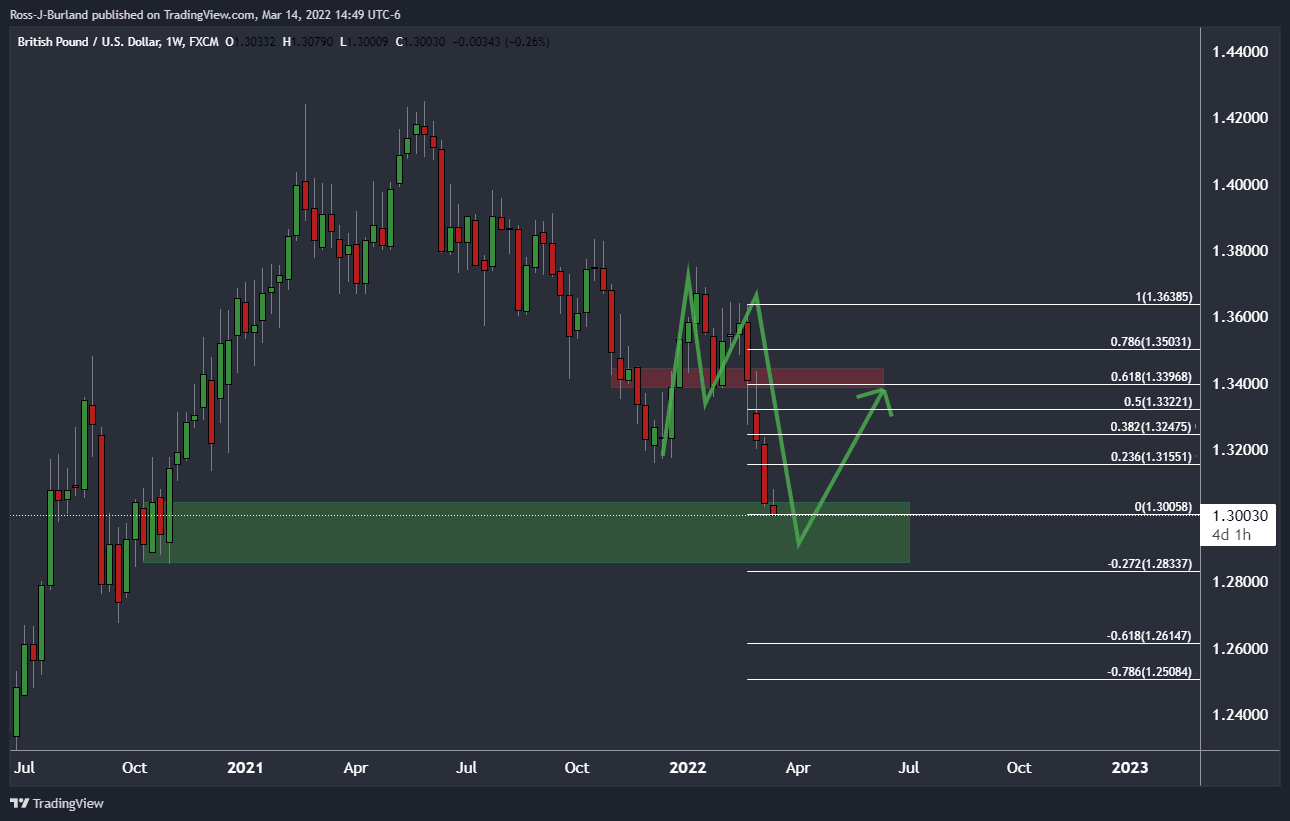 GBP/USD is testing the 1.30 psychological figure in risk-off market conditions. There is room for lower, according to the weekly chart, with eyes on 1.2850. However, the bulls are waiting in the flanks for a bullish weekly close that could signal the end of the current bearish cycle with a focus on a reversion towards 1.3380.