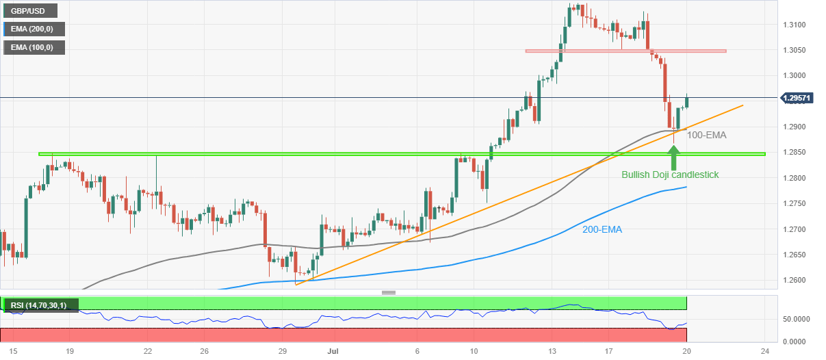 GBP/USD remains on the front foot around the intraday high of near 1.2965 amid early Thursday morning in London, snapping a four-day downtrend while reversing from the lowest levels in seven days. In doing so, the Cable pair justifies multiple technical signals which favor the bullish bias about the Pound Sterling price.