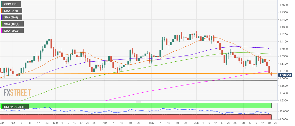 GBP/USD Price Analysis: Challenges critical support near 1.3630 after 200-DMA caves in
