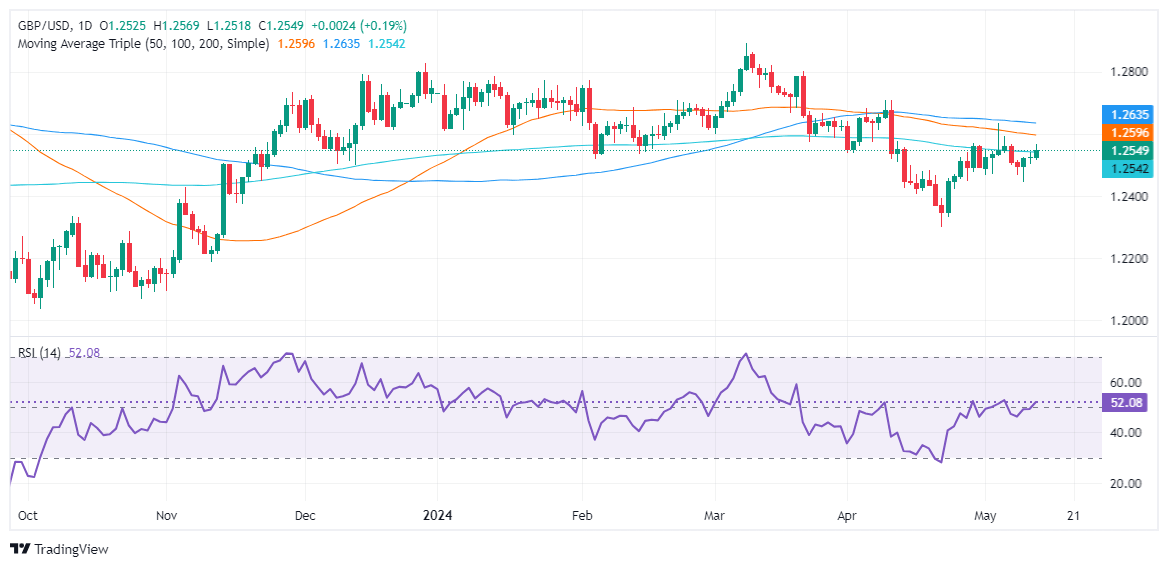 The Pound Sterling gains traction against the US Dollar and climbs above the 200-day moving average (DMA) of 1.2541 in early trading during the North American session. At the time of writing, the GBP/USD trades at 1.2566, up by 0.36%.
