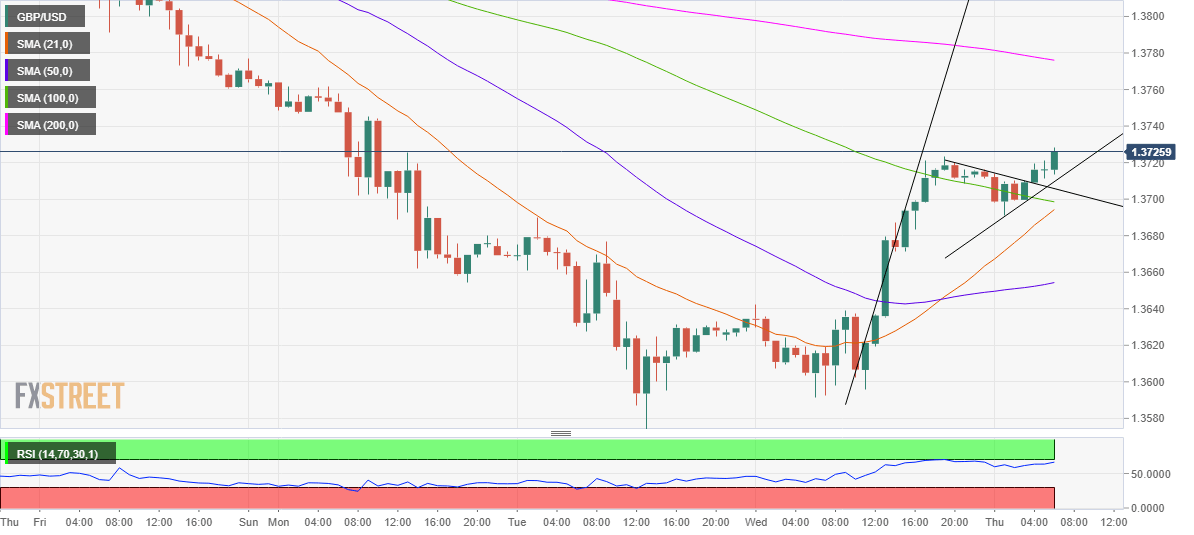 GBP/USD is looking to extend its break higher towards the 1.3800 level, with the bulls likely to meet initial demand at the slightly downward-sloping 200-Hourly Moving Average (HMA) at 1.3779.