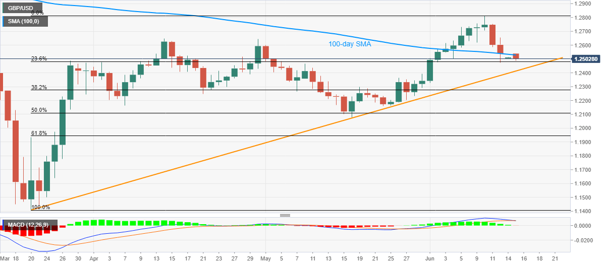 GBP/USD Price Analysis: Falls below 100-day SMA to battle 1.2500