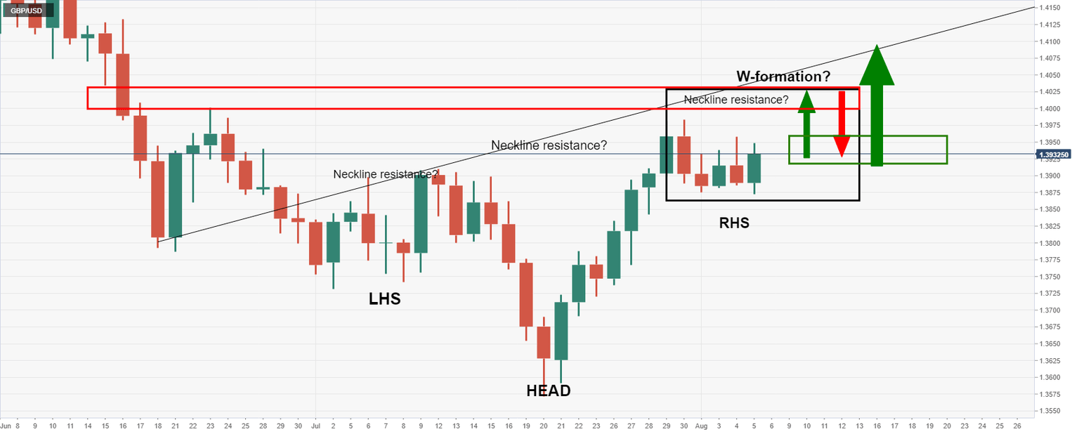 - GBP/USD bulls seeking a test of the daily highs but awaits NFP.