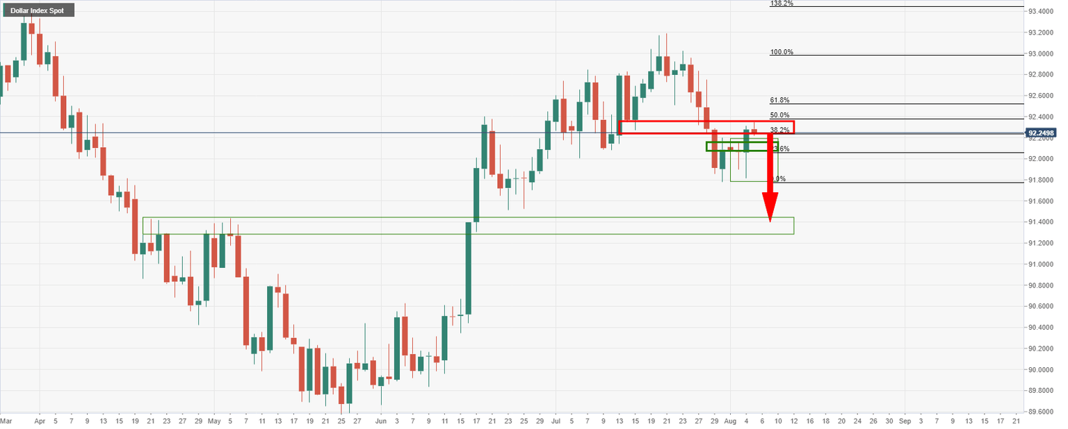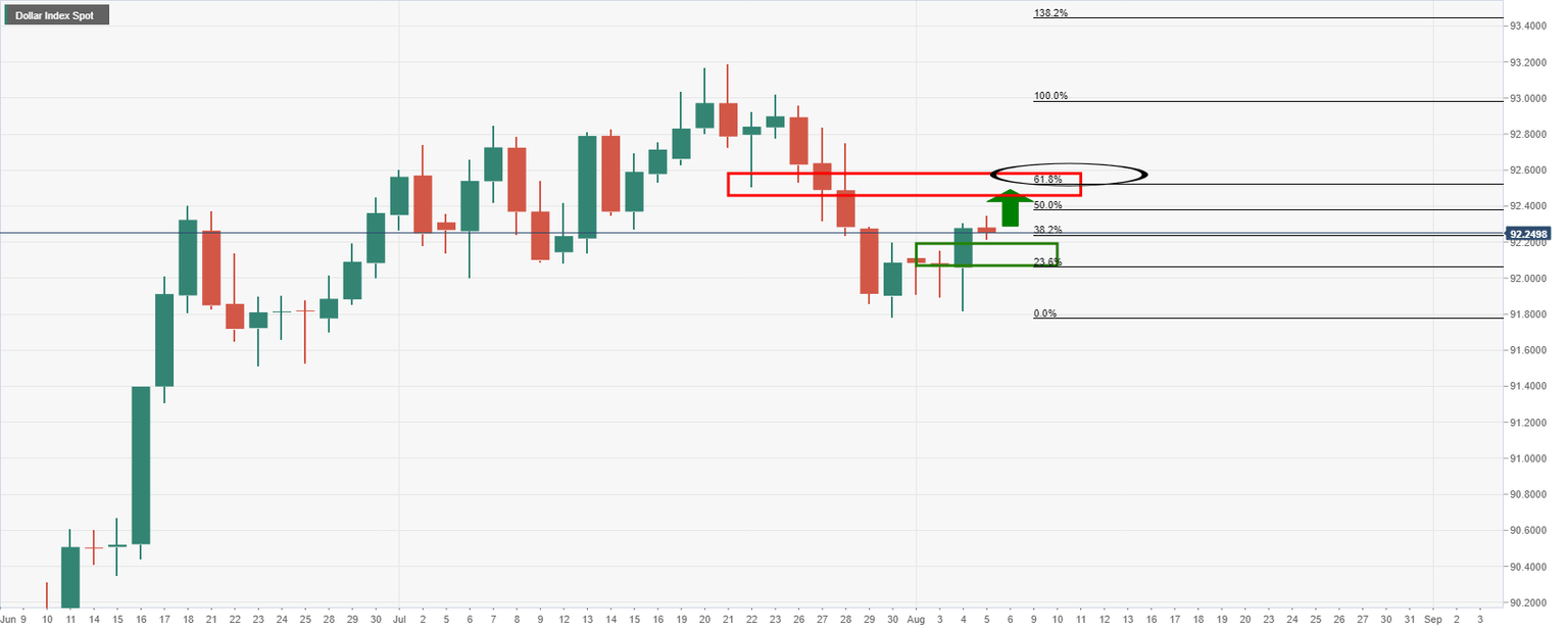 The current trajectory in the US dollar is higher for prospects of a deeper correction into the 61.8% Fibonacci retracement level next to prior lows in the 92.50 area.