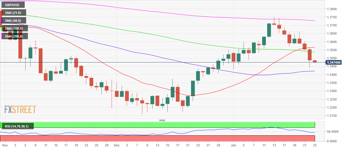 - 50-DMA support at 1.3421 remains in sight if bears extend their control.