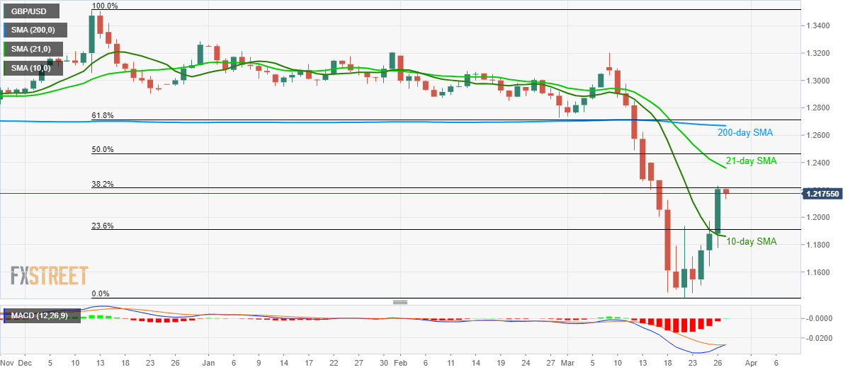 As a result, a sustained break of 1.2215 immediate resistance could escalate the recovery moves towards a 21-day SMA level of 1.2360.