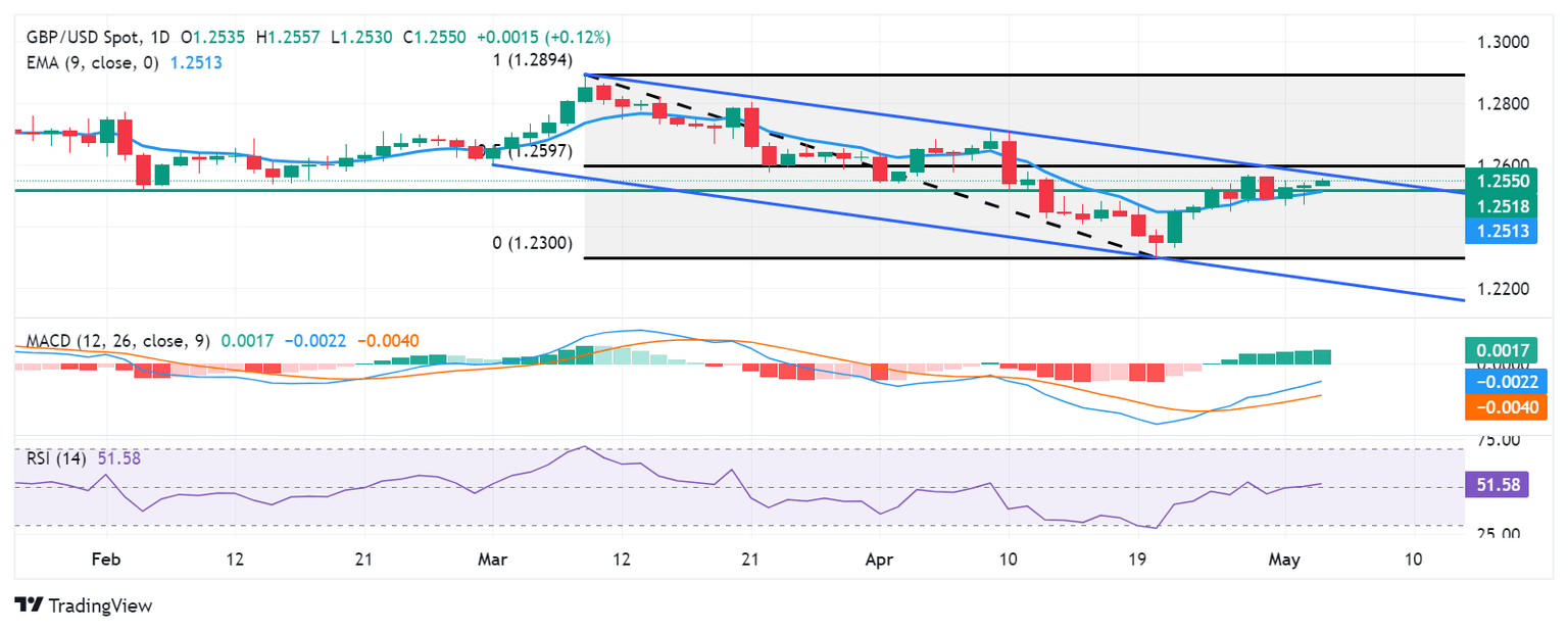 GBP/USD Price Analysis: Moves above 1.2550 to test the channel’s upper boundary