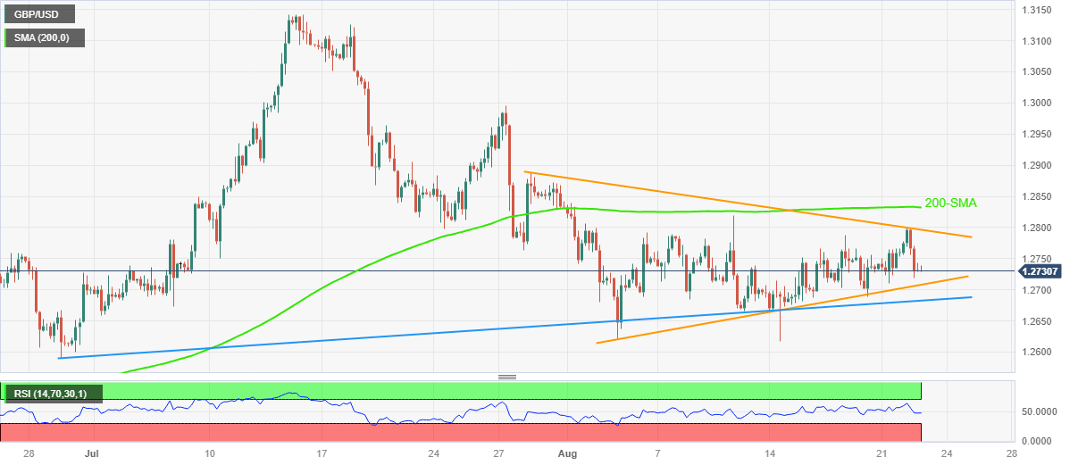 GBP/USD Price Analysis: Portrays anxiety within symmetrical triangle above 1.2700 ahead of UK/US PMI