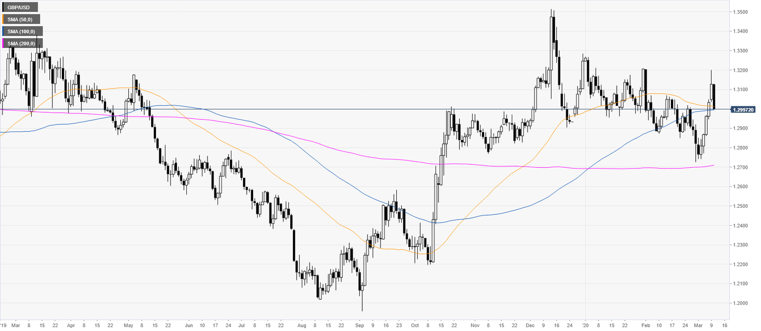 GBP/USD is retracing down from the 1.3200 figure while now challenging the 50 and 100 simple moving averages (SMAs). This Tuesday the pound is down sharply vs. the dollar.