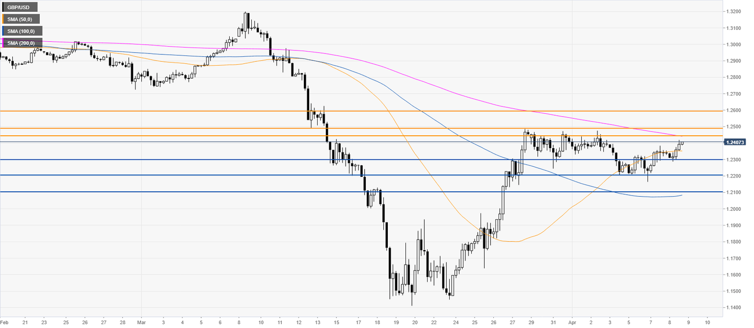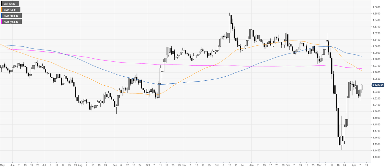 After sinking to 1985 lows in March, GBP/USD is bouncing sharply while the quote remains below its main simple moving averages (SMAs) on the daily chart.