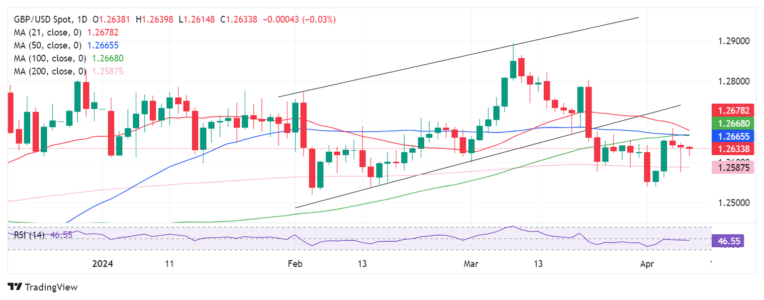The Pound Sterling (GBP) is trading on the back foot against the US Dollar (USD), as the GBP/USD pair manages to hold above the 1.2600 level at the start of the week on Monday.