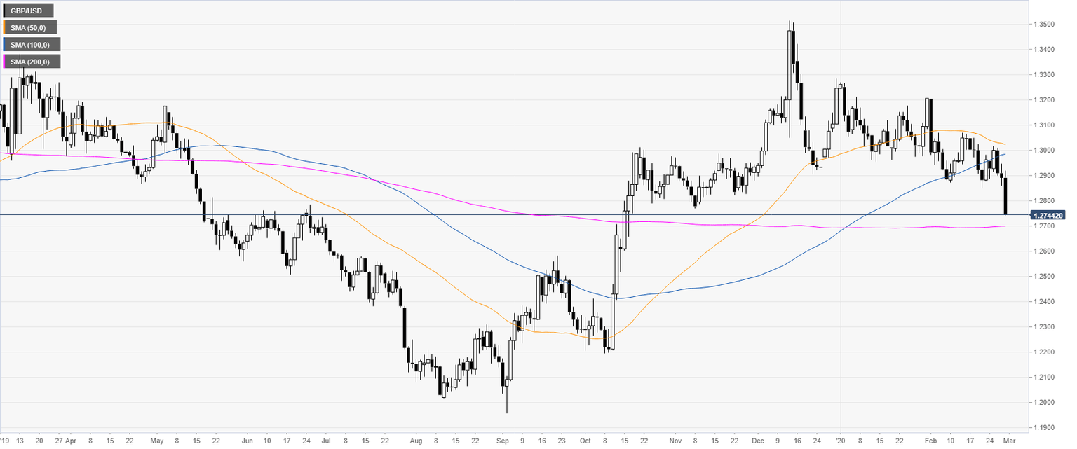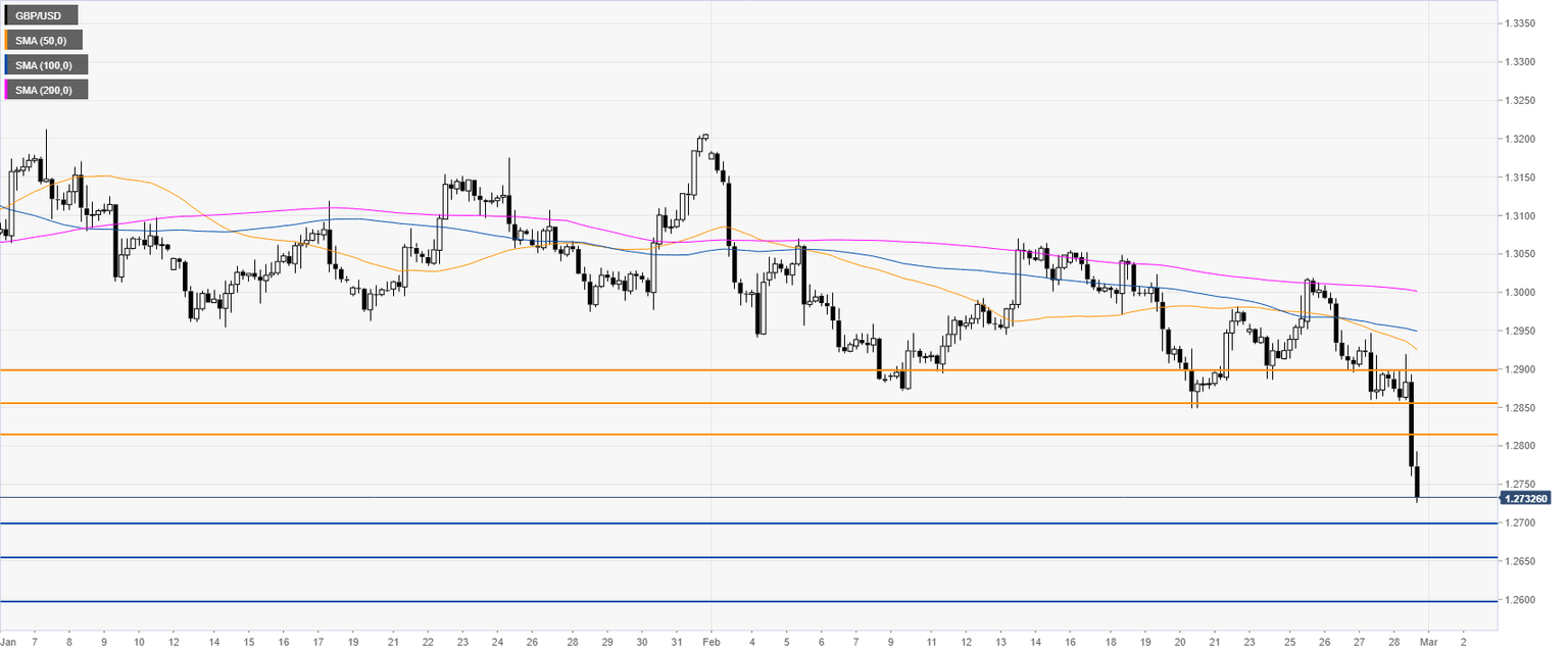 - GBP/USD is trading in four-month lows, nearing the 1.2700 figure.