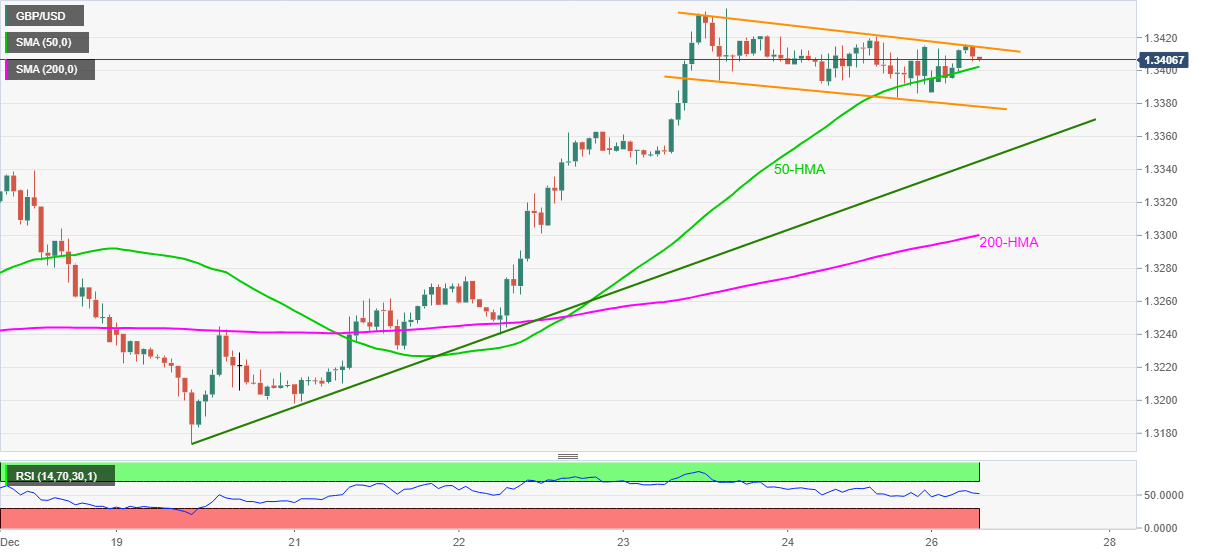 Meanwhile, the 50-HMA level near 1.3400 precedes the stated flag’s support line close to 1.3375 to restrict short-term GBP/USD declines.