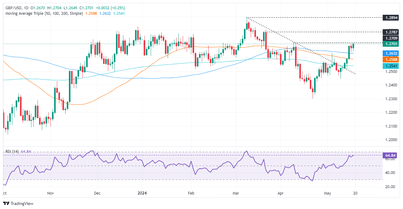 The British Pound registers gains of 0.21% against the US Dollar, although higher US Treasury yields failed to underpin the Greenback. At the time of writing, the GBP/USD pair trades at 1.2703 after bouncing off a daily low of 1.2644.