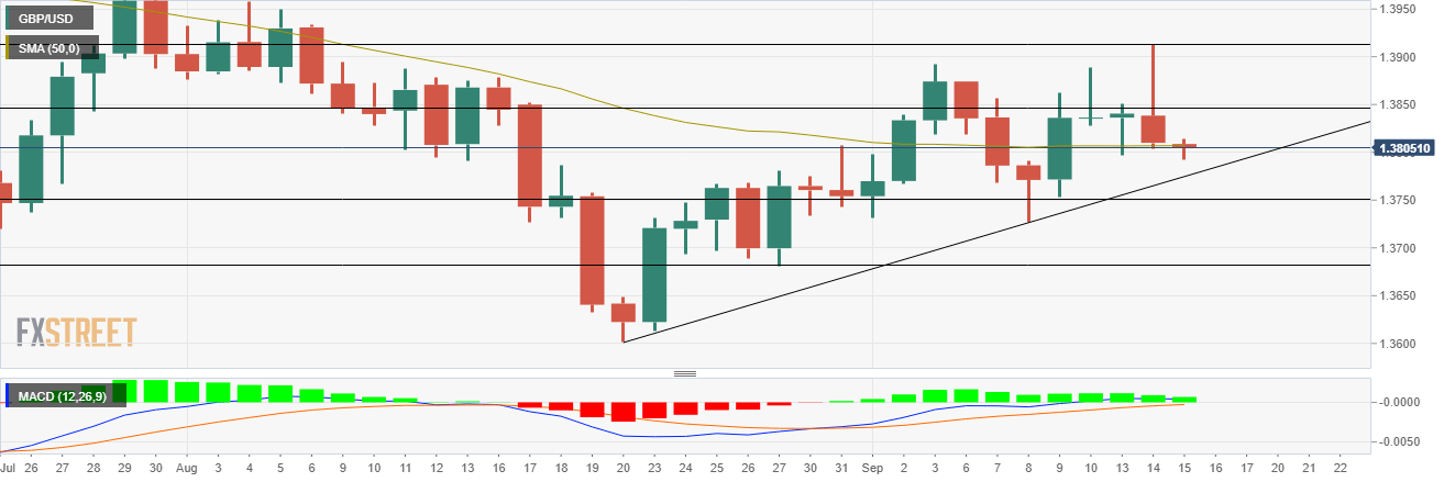 That said, GBP/USD bears would like to test the low made on September 8 at 1.3726 followed by the 1.3680 horizontal support level.
