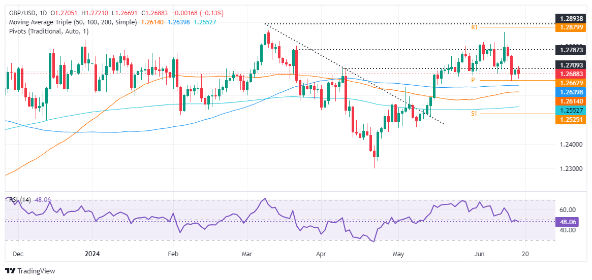 - GBP/USD trades below 1.2700 after hitting a two-day high of 1.2720.