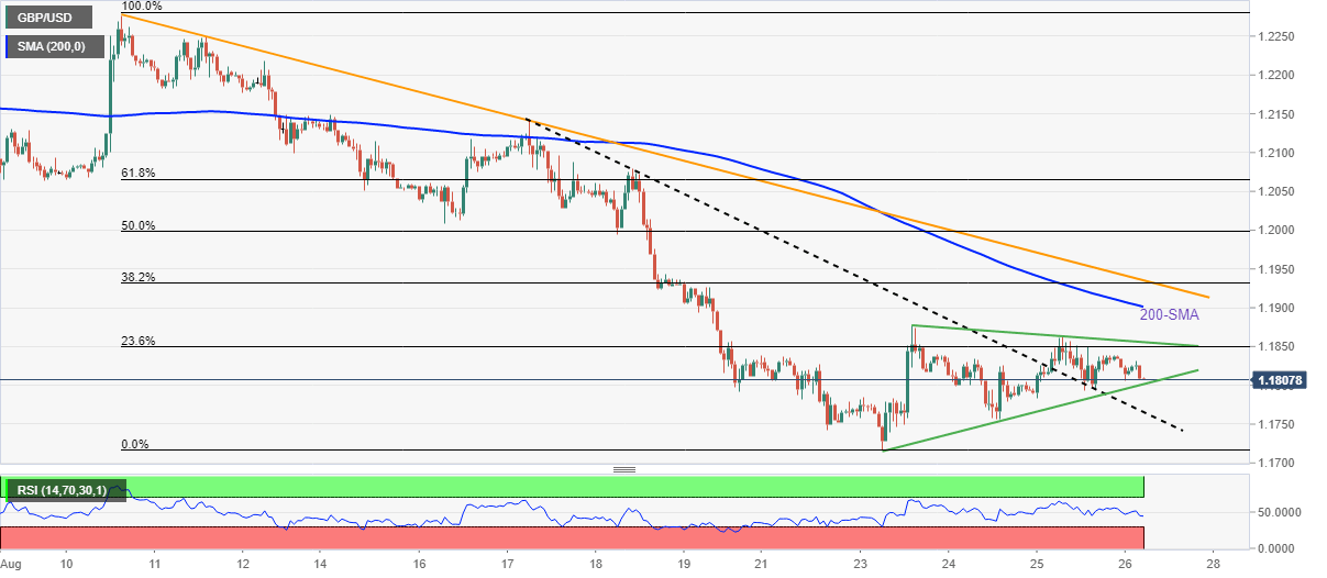 GBP/USD renews intraday low around 1.1810 sellers try to excel ahead of the key data/events during early Friday morning in Europe. In doing so, the Cable pair remains inside a one-week-old triangle.