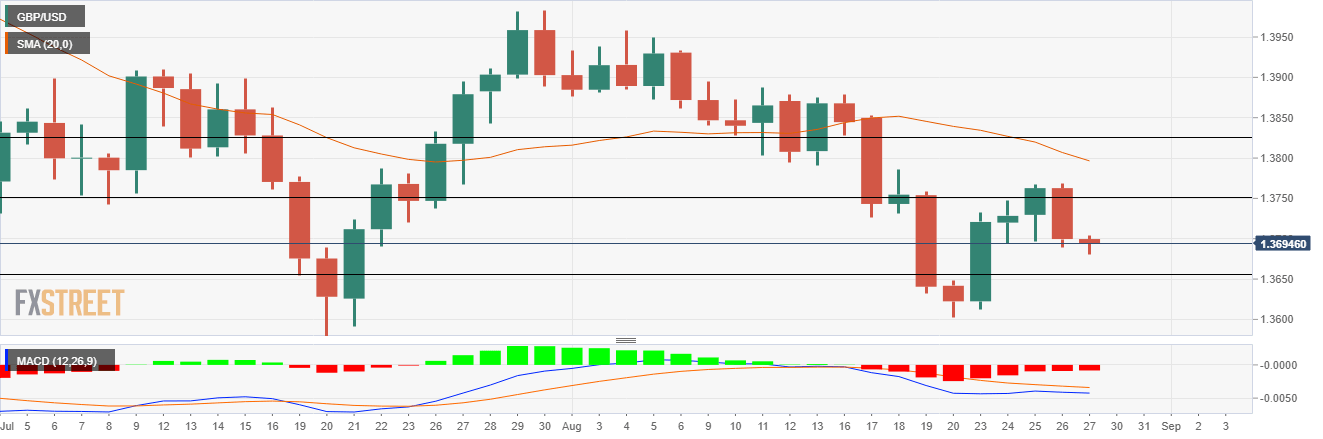 On the daily chart, GBP/USD has recovered from the yearly lows on August 20 at 1.3602 to touch the high at around 1.3768.