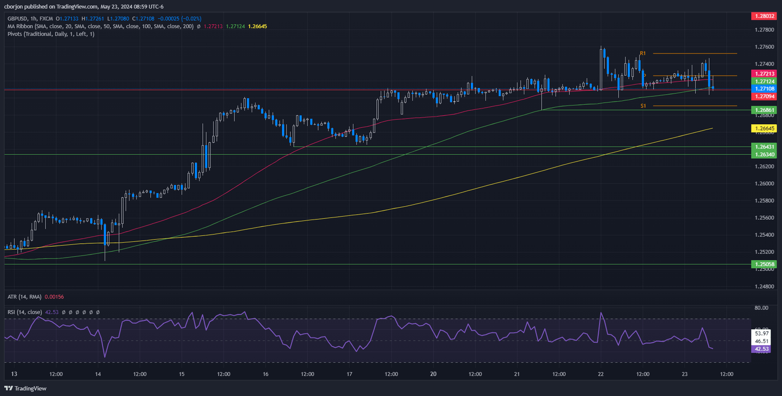 - Resistance at 50-hour SMA (1.2721), 100-hour SMA (1.2712), weekly high of 1.2761; potential target at 1.2800.