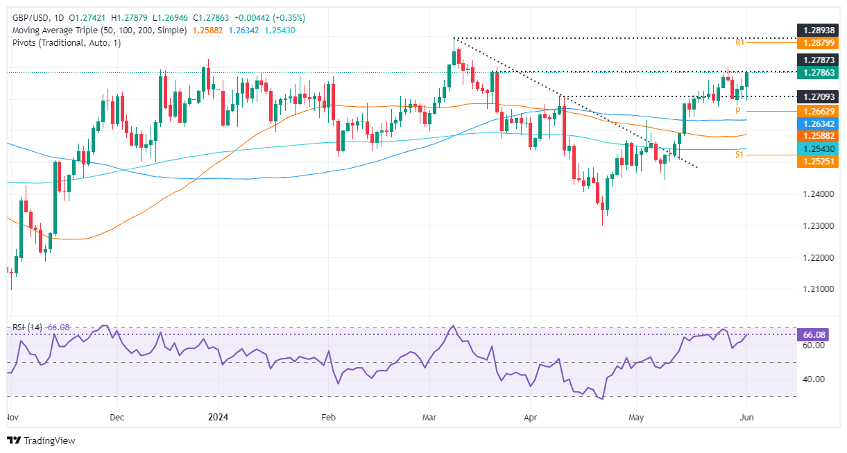 From a daily chart perspective, the GBP/USD is upward biased as buyers gain momentum, reflected on the Relative Strength Index (RSI). The RSI aims upwards yet with a room before turning overbought.