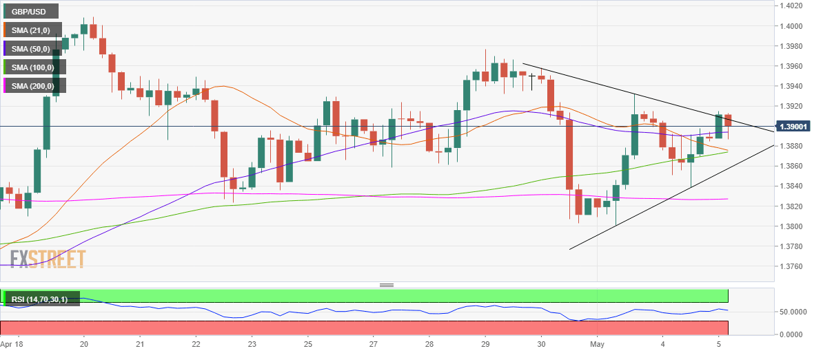 GBP/USD Price Analysis: Struggles around 1.3900 despite triangle breakout